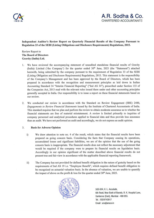 Gravity India Limied Financial Results
