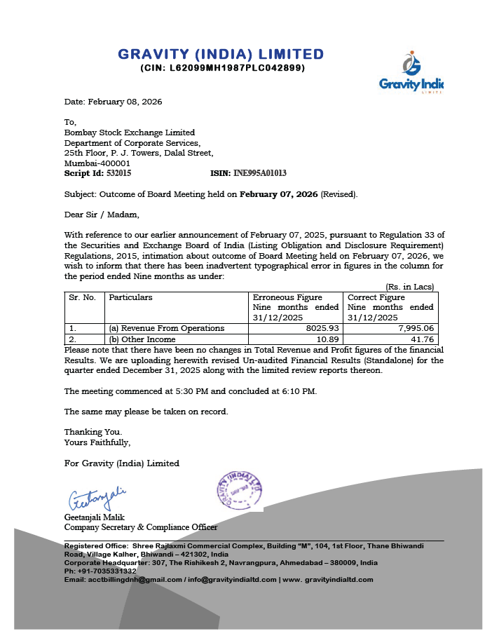 Gravity India Limied Financial Results